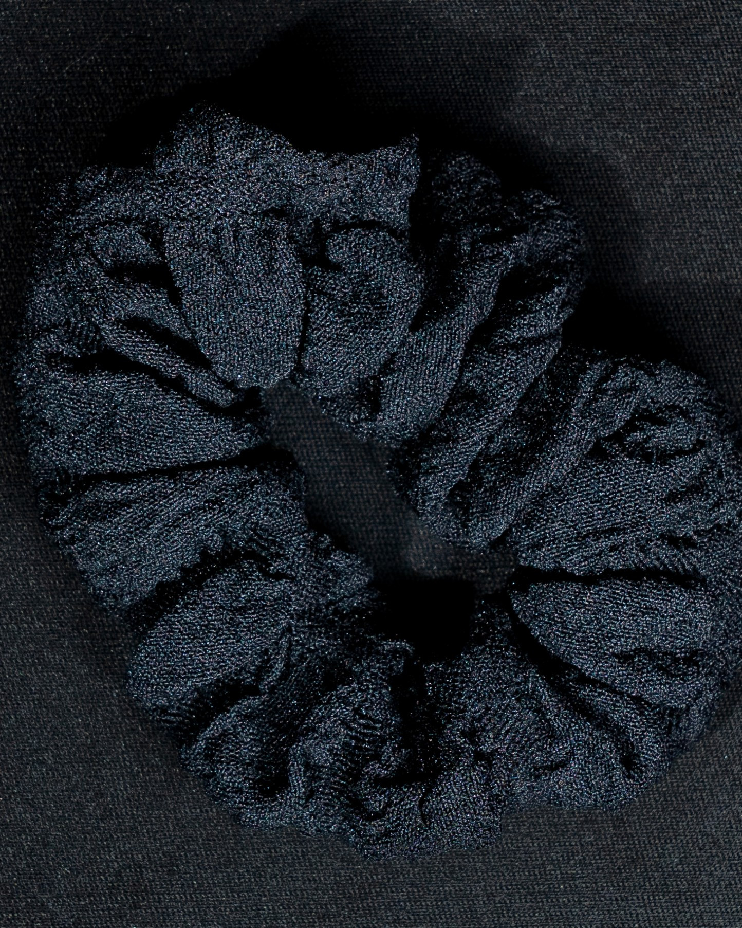 A timeless black scrunchie with a softly textured finish, designed for a clean and versatile look. Its minimal aesthetic makes it an everyday essential that pairs effortlessly with any outfit, from casual to polished styles.