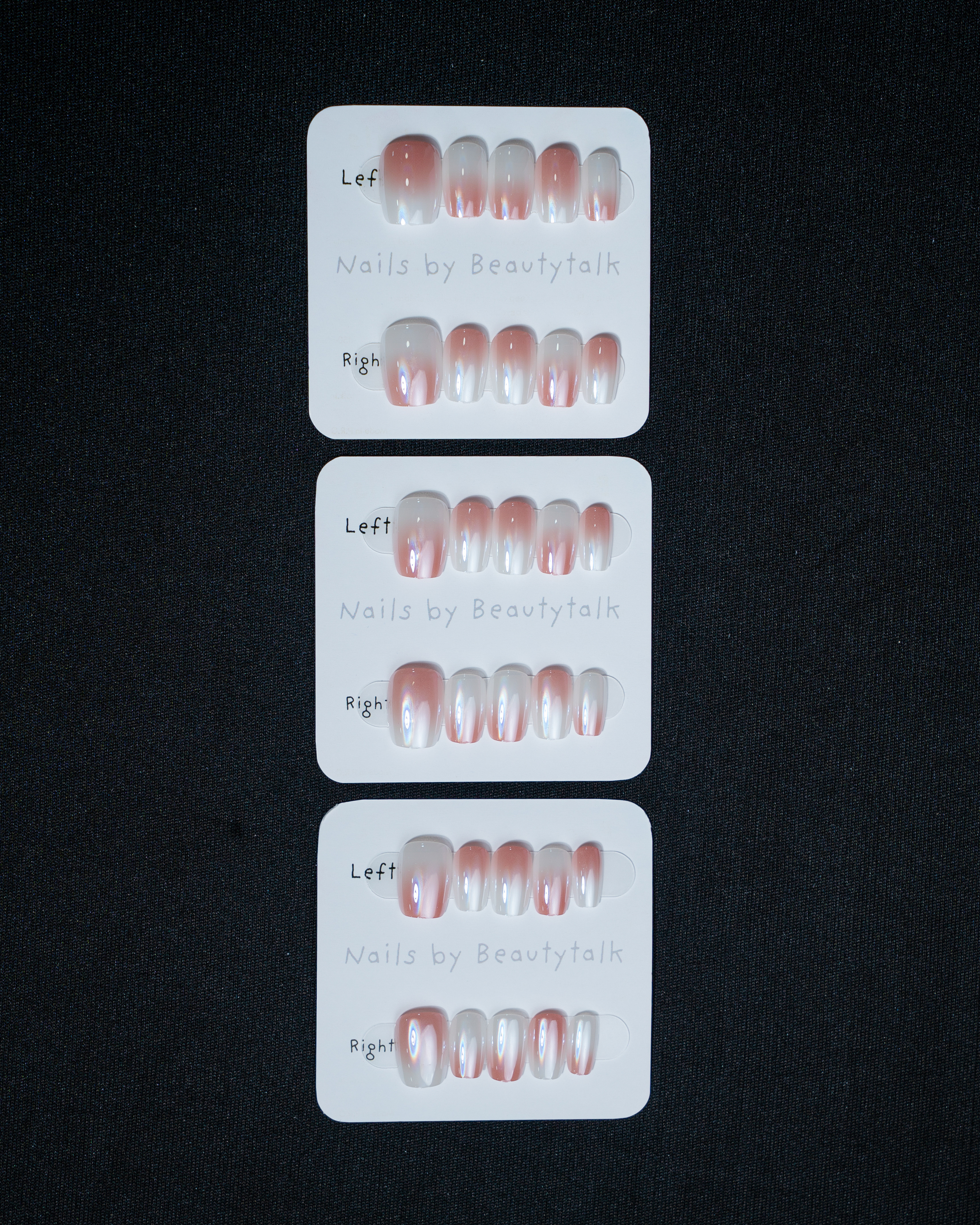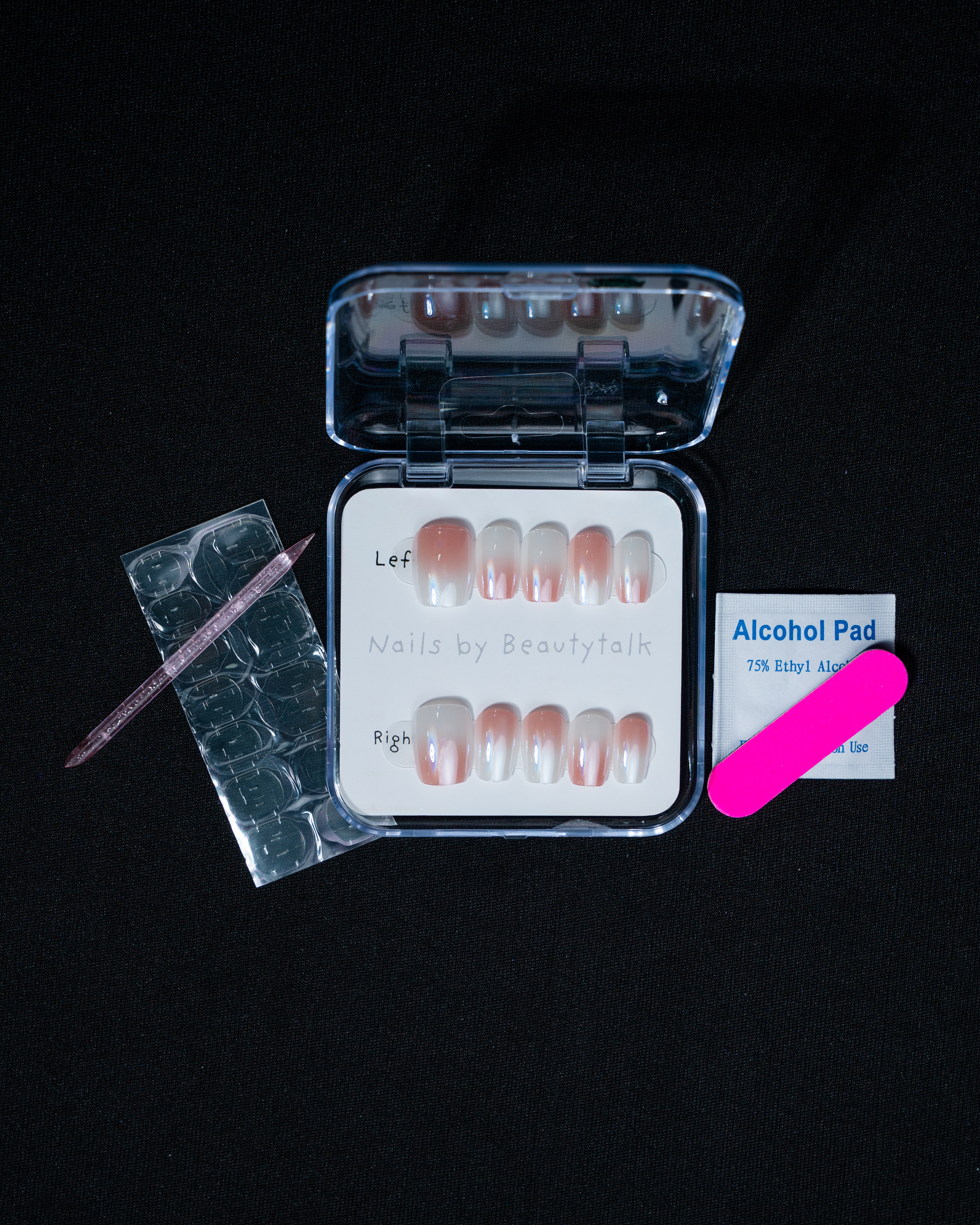 Prep nails → Apply glue/tab → Press and hold for a few seconds