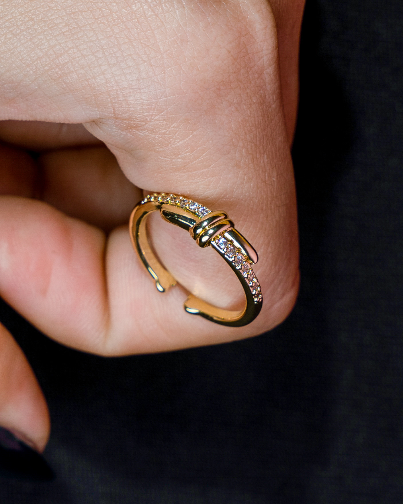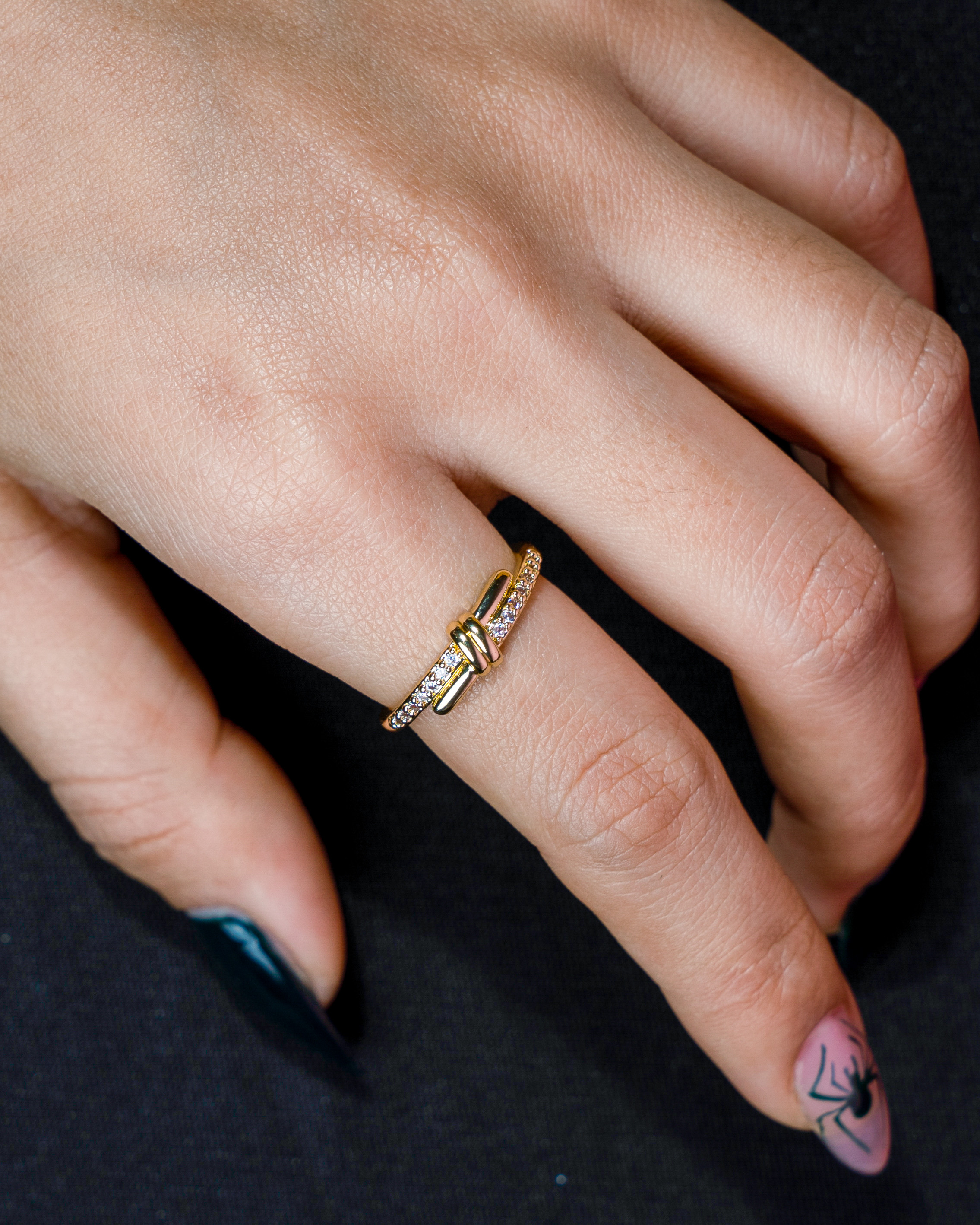 A modern knot-inspired ring with sparkling crystal pavé, finished in a sleek silver-tone for a clean, contemporary look. The intertwined design symbolizes connection and elegance, making it a subtle statement piece that works beautifully for everyday wear or special occasions. Lightweight, minimal, and easy to style with both casual and dressy outfits.