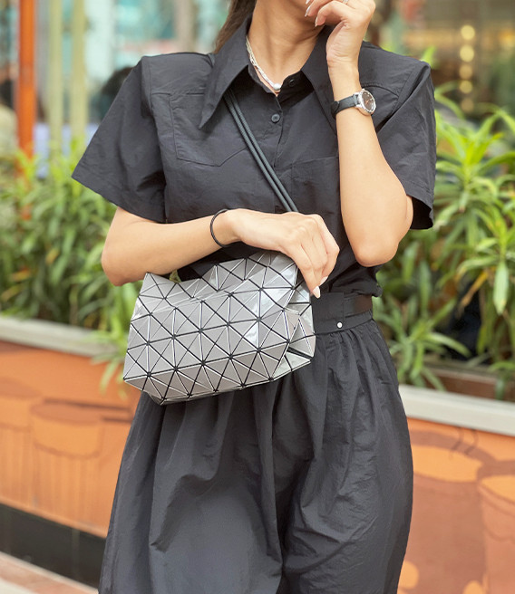 - When wearing dark colors (black, navy, etc.), please be careful as color transfer may occur if you match them with a light-colored (white, ivory) bag or clothing.