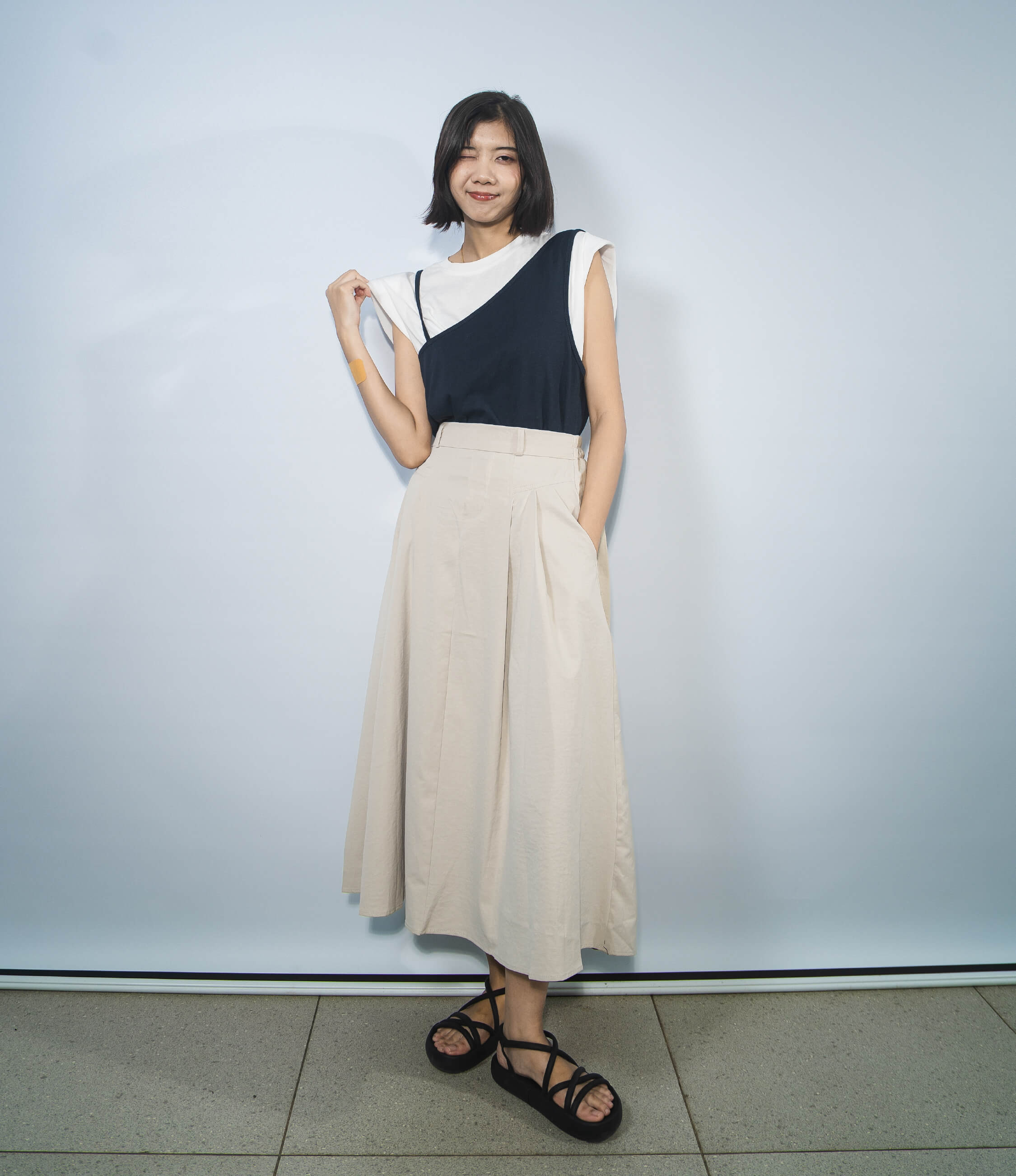 Soft Pleating: Subtle pleats at the waist contribute to the skirt’s gentle volume without overwhelming the shape.
