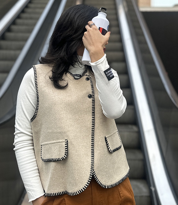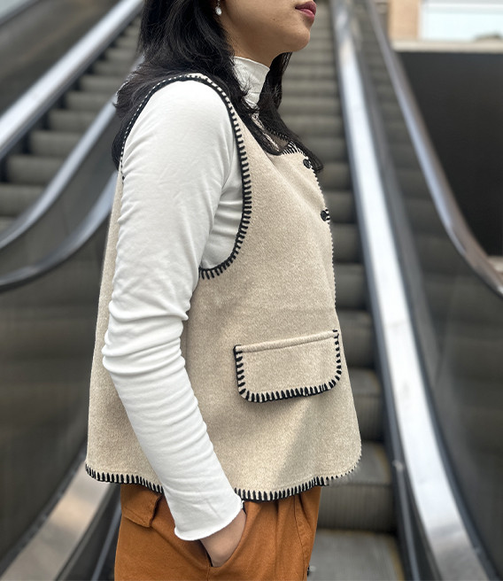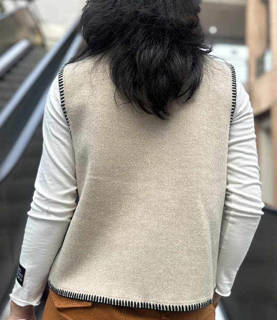 half cardigan Fabric: The cardigan is often made from a soft, cozy material such as knitted fabric, fleece, or a similar warm, tactile material that enhances the comfort and warmth of the overall piece. The cardigan may also feature a different texture or pattern to complement the cardigan.