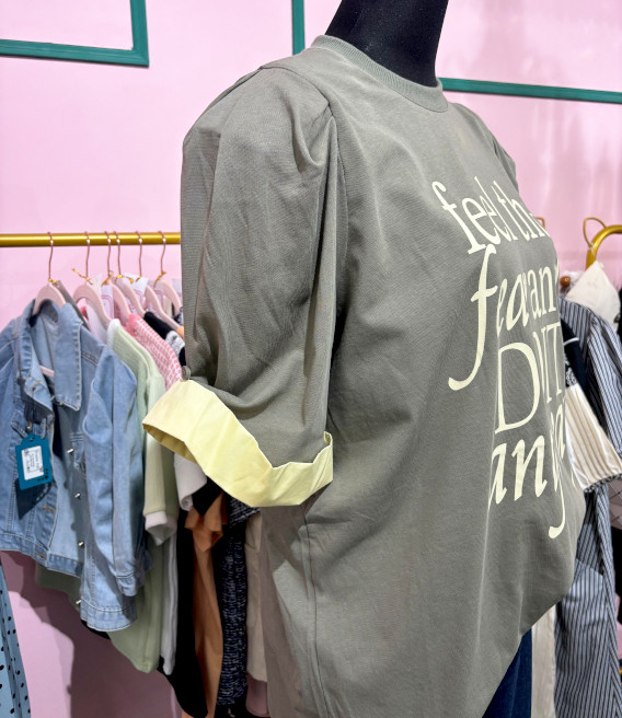 Puff Sleeves: The standout feature of this t-shirt is its puff sleeves, which add volume and a feminine touch to the classic t-shirt design. The puff sleeves are delicately gathered at the shoulders, creating a soft, romantic silhouette.