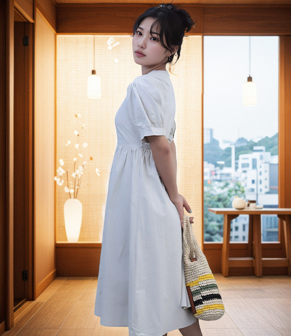 Flattering Silhouette: Designed to flatter all body types, this dress may feature a fitted bodice that accentuates the waist and a flared skirt that flows gracefully over the hips. The combination of these elements ensures a flattering and comfortable fit.