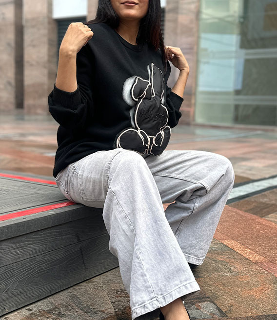 Printed Details: In some designs, the rabbit print may be subtly incorporated into a larger graphic or pattern, adding additional visual interest to the sweatshirt.