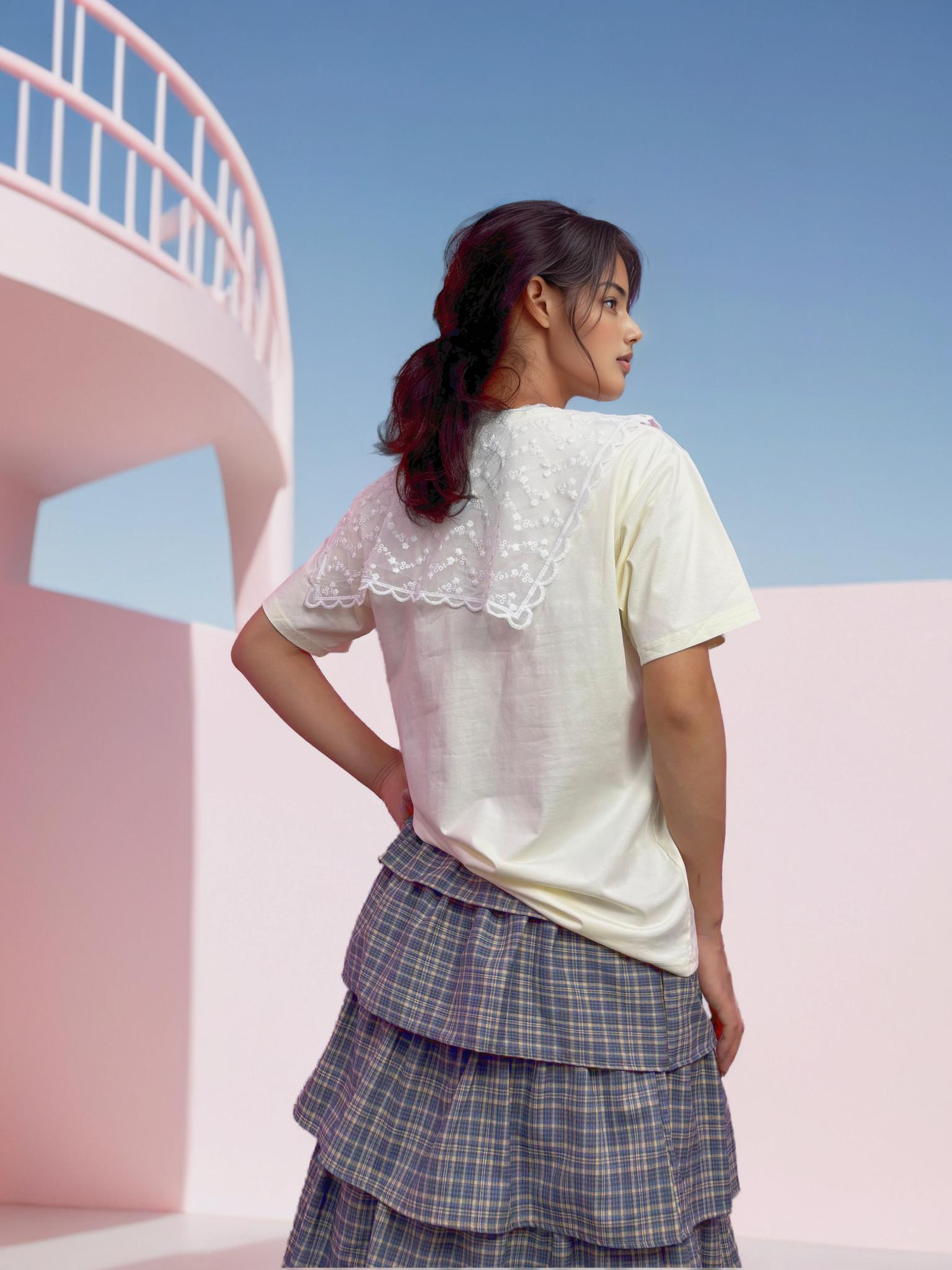 Tshirt wish with net scarf (light beige)